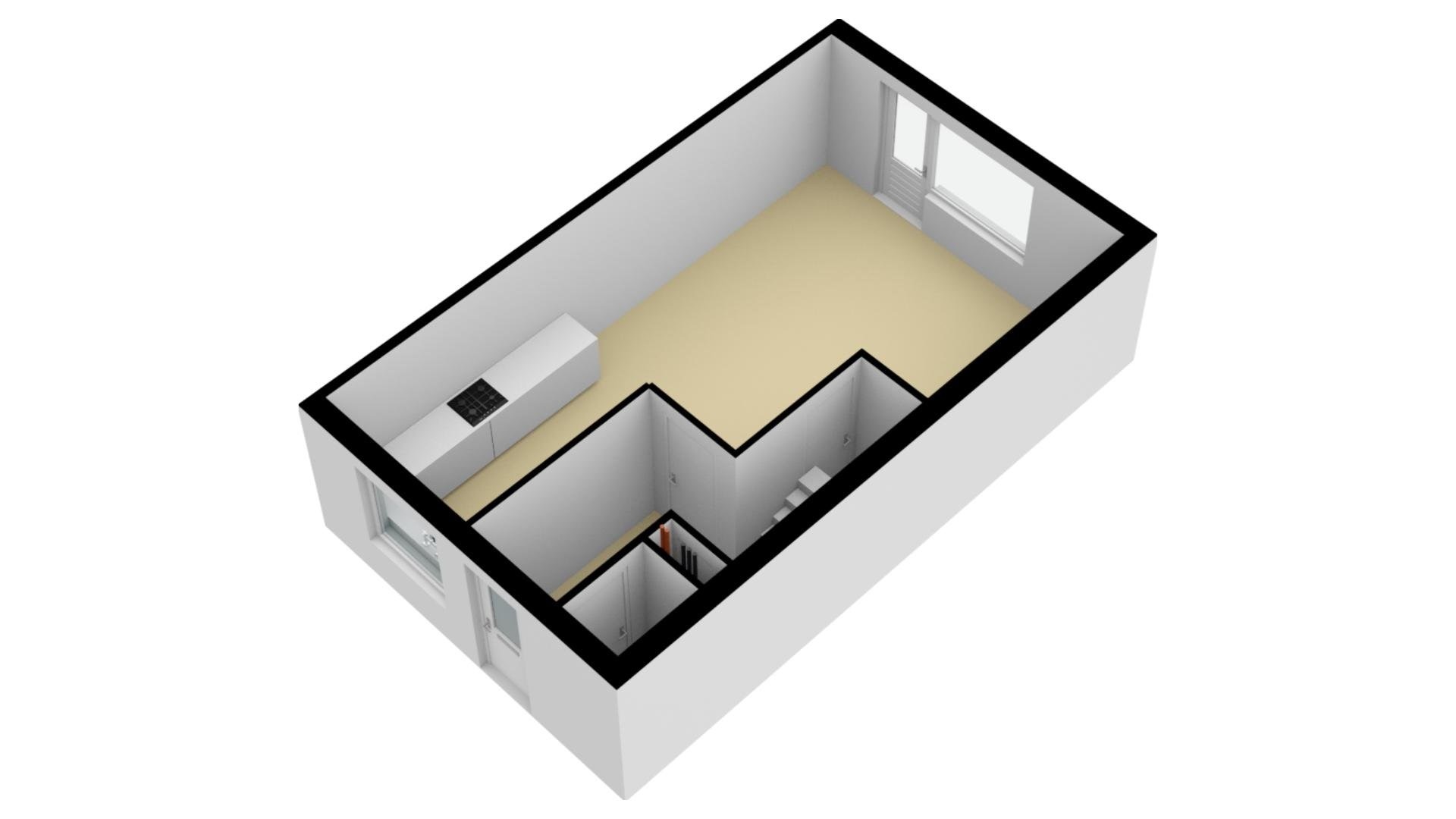 De ruime en lichte woonkamer is gesitueerd aan de achterzijde van de woning en kijkt uit op de achtertuin. Dankzij de grote raampartijen is er veel daglicht aanwezig. De gehele begane grond is voorzien van een strakke pvc vloer met comfortabele vloerverwarming. In de praktische trapkast bevindt zich de bediening van de vloerverwarming.
