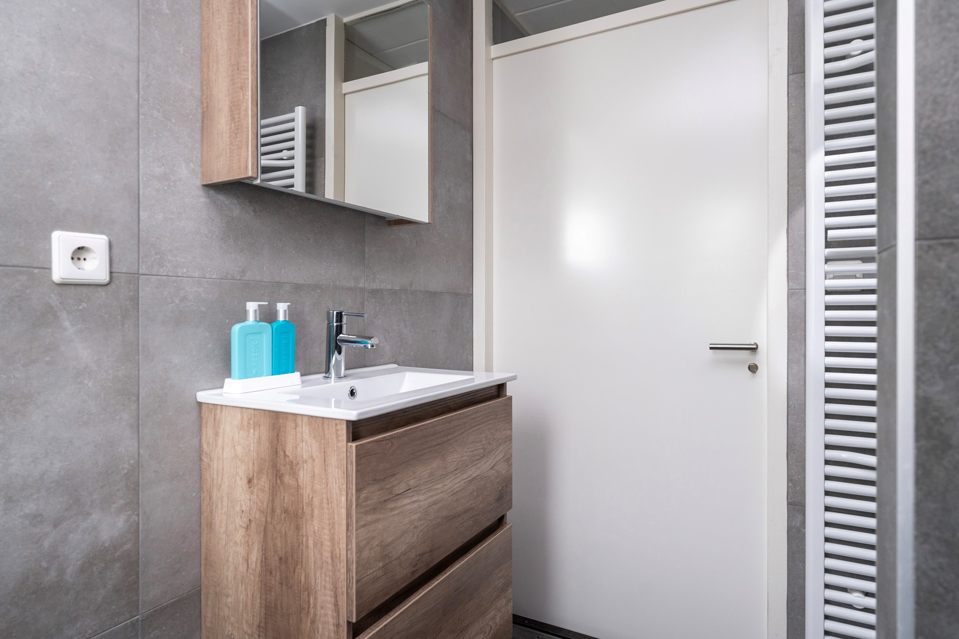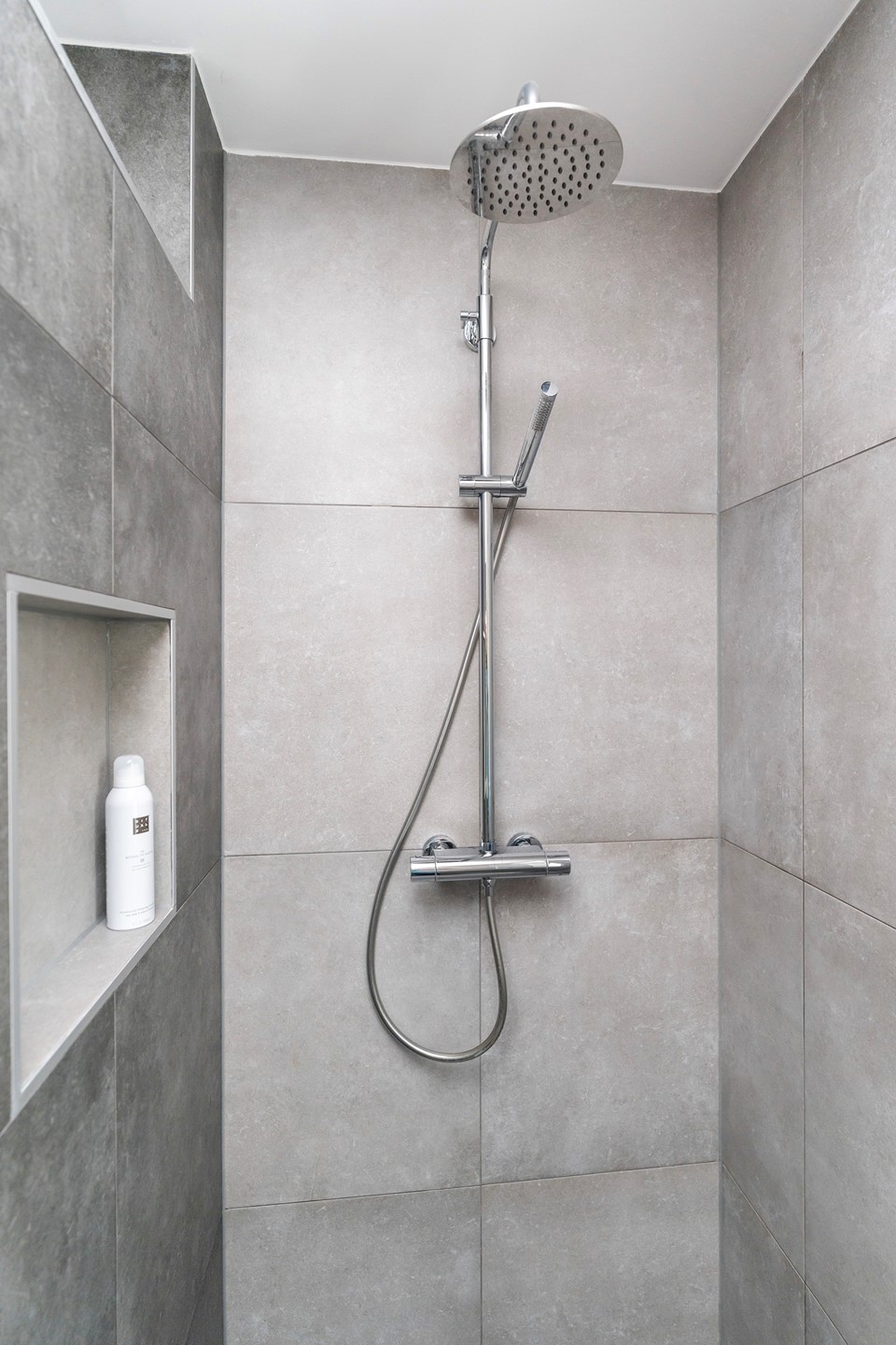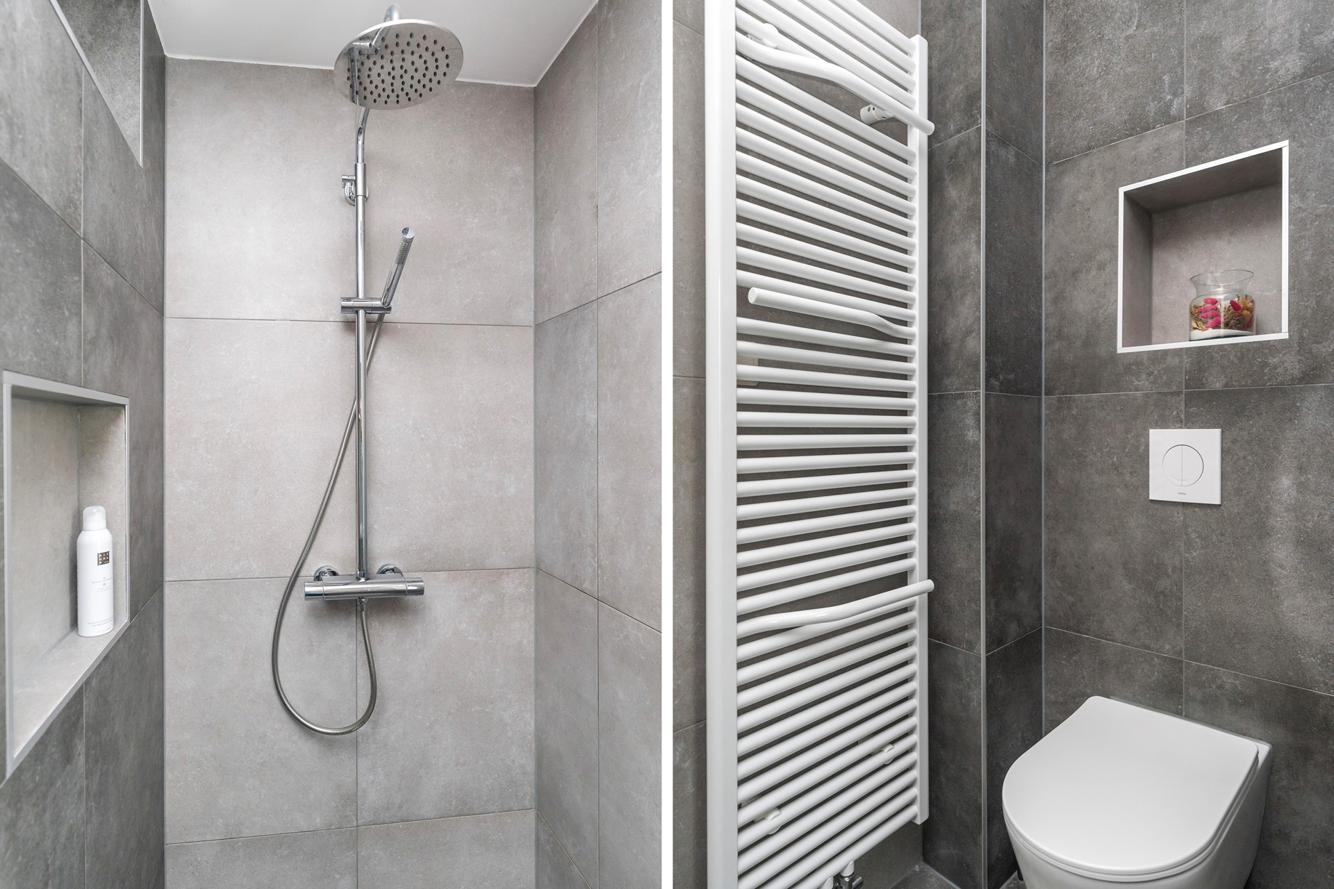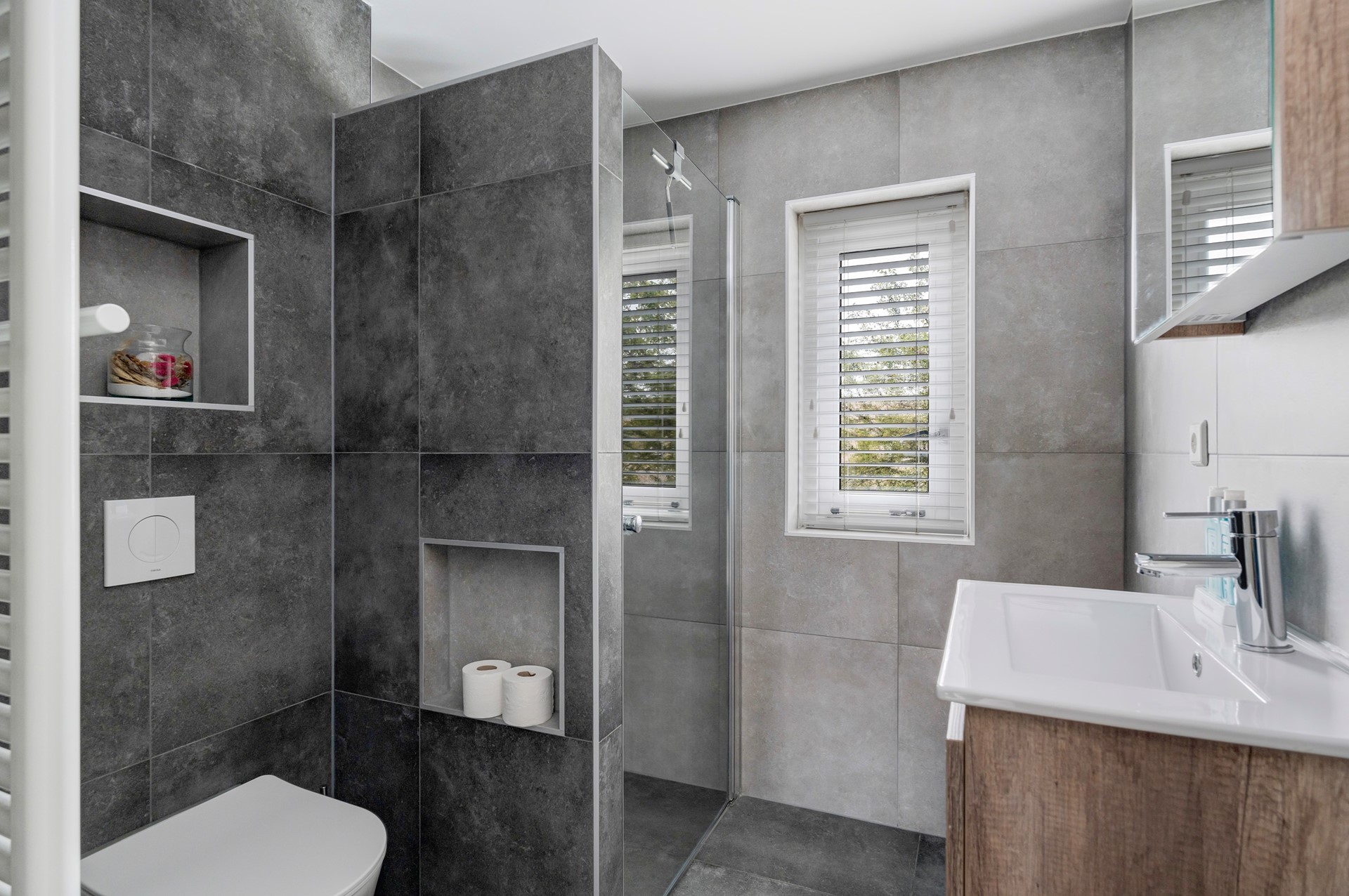 Overloop met vaste kast en toegang tot drie slaapkamers en de badkamer. De badkamer is in 2021 volledig gemoderniseerd en heeft een frisse en moderne uitstraling. De badkamer beschikt over: