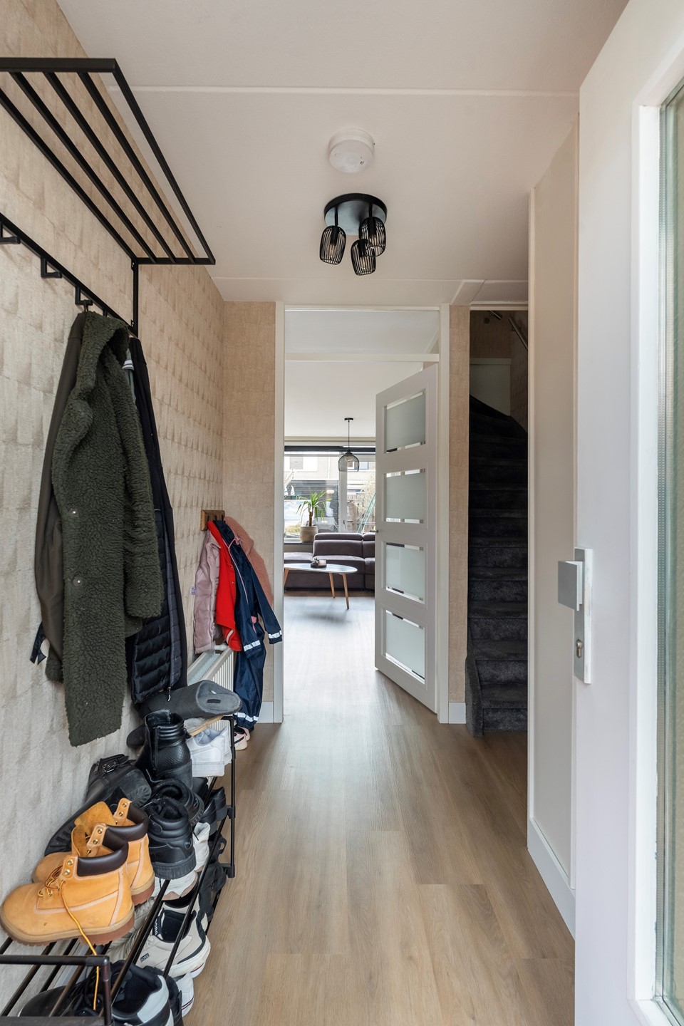 Via de entree komt u in de hal met modern toilet (2021) met fonteintje, garderoberuimte, uitgebreide meterkast en de trapopgang naar de eerste verdieping.