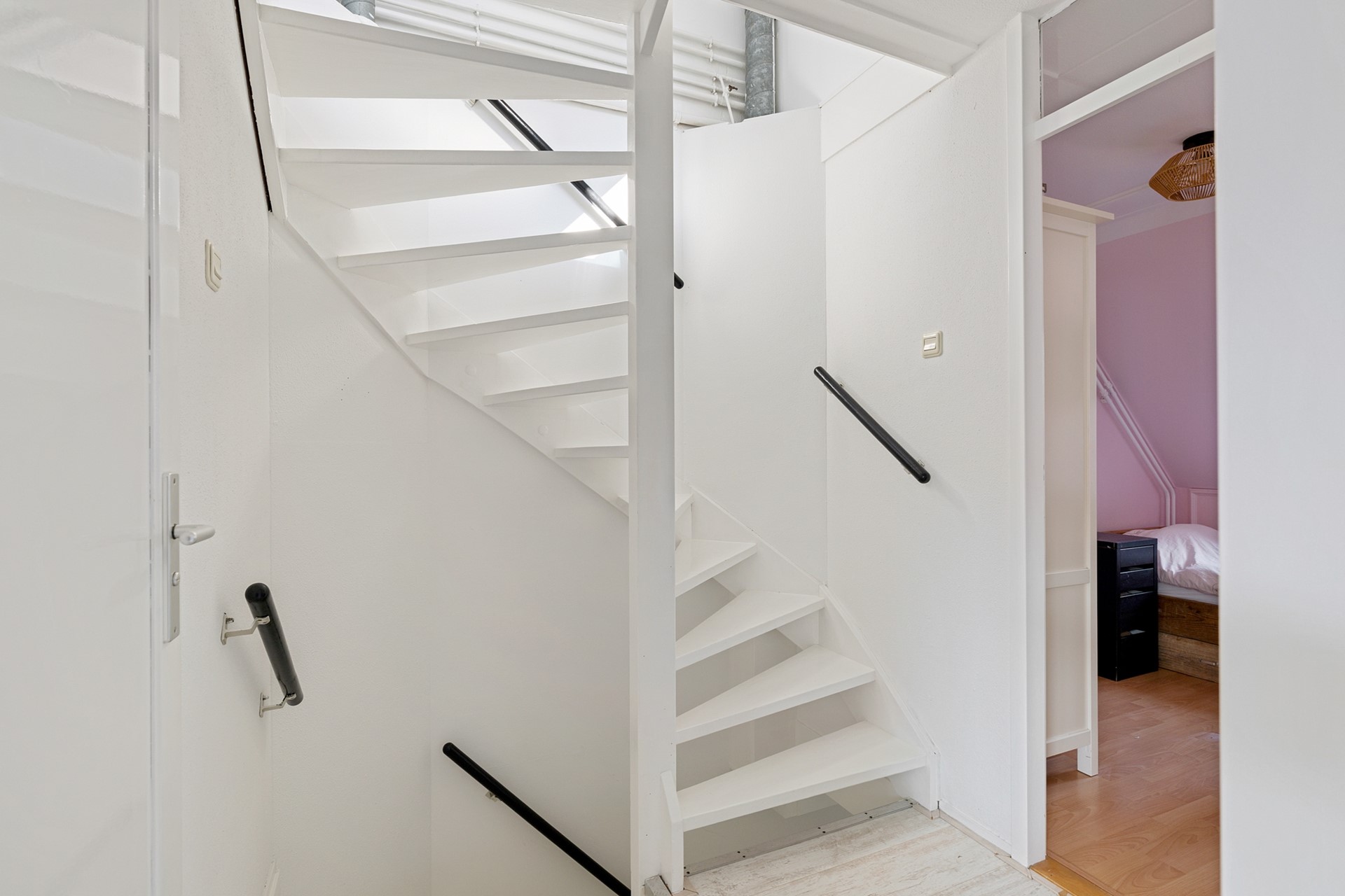 Overloop met toegang tot drie slaapkamers en de badkamer. De slaapkamers zijn praktisch ingedeeld en geschikt als slaap-, werk- of kinderkamer.