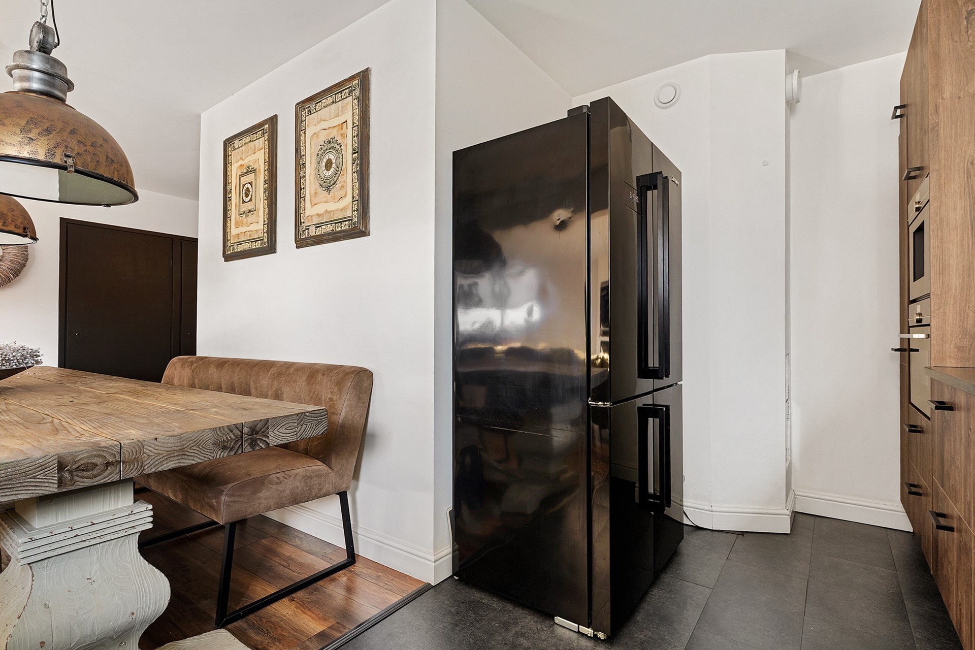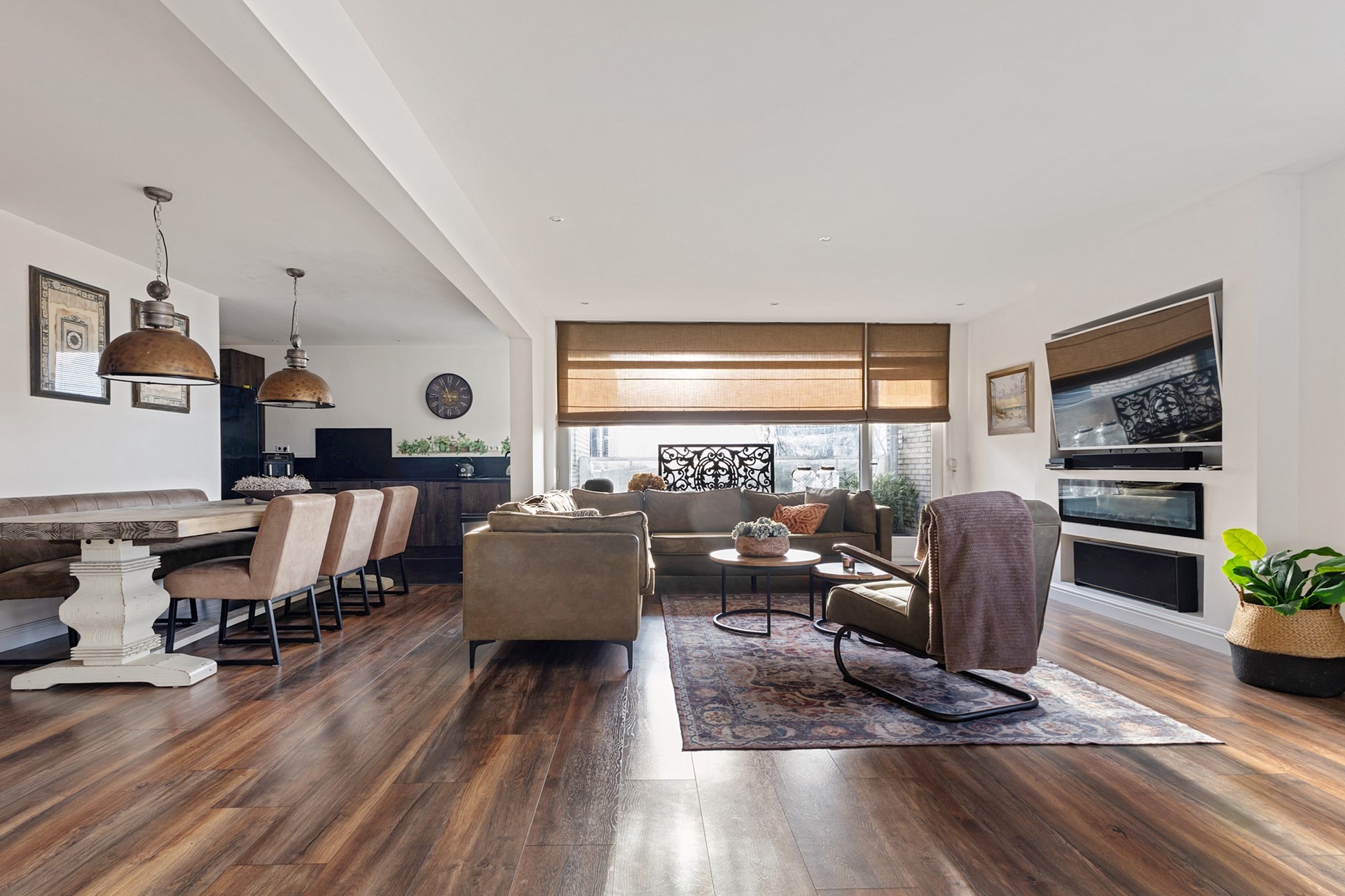 De woonkamer is ruim opgezet en biedt dankzij de grote raampartijen een overvloed aan daglicht én fantastisch uitzicht. Vanuit de woonkamer heeft u toegang tot het zonnige balkon, waar u ’s middags en ’s avonds heerlijk kunt zitten. De open keuken is strak en praktisch ingericht, voorzien van moderne inbouwapparatuur en voldoende werkruimte. O.a. aanwezig zijn een Quooker, Bora afzuiging in de inductie kookplaat, vaatwasser en een luxe koffiezet automaat.