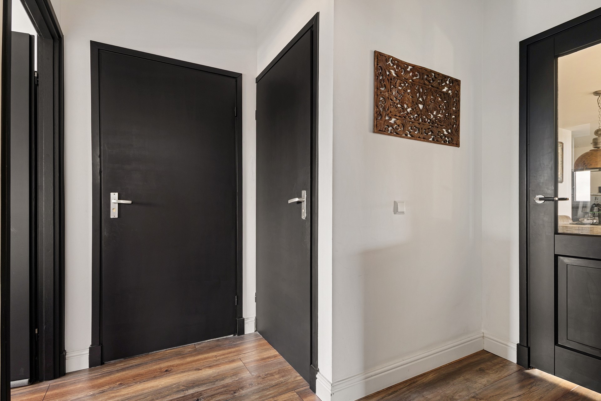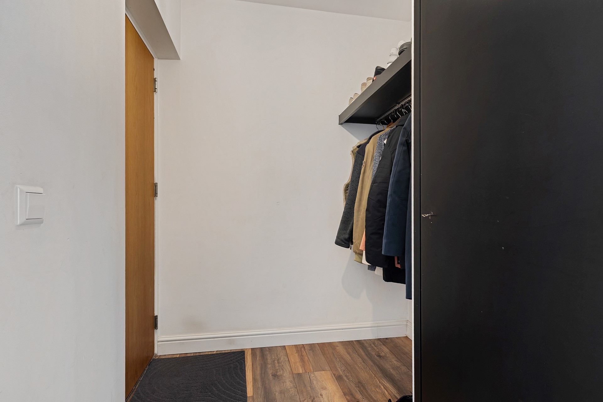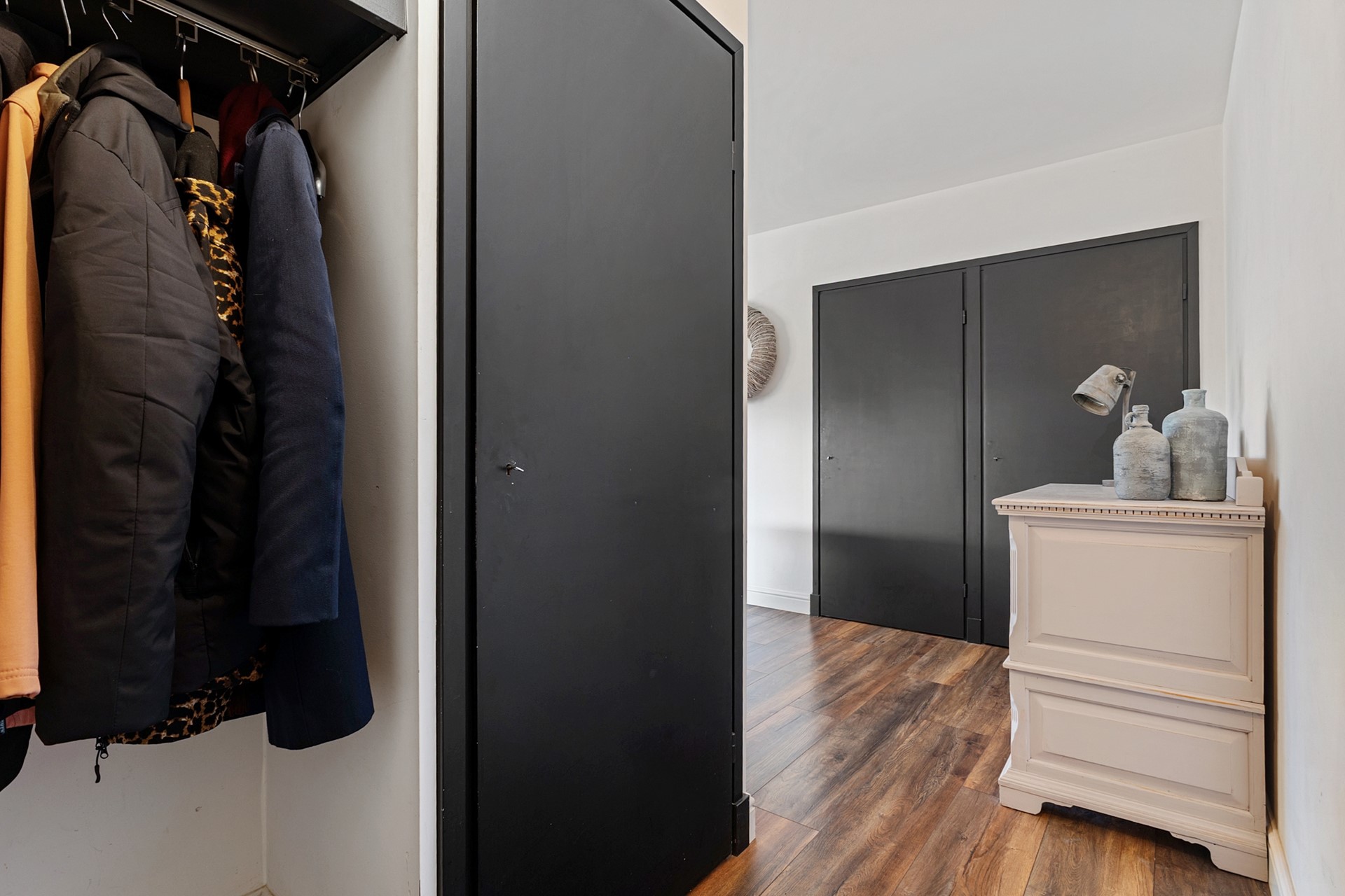 Entree appartement: ruime hal met garderoberuimte, moderne meterkast en een berg-/voorraadkast.
