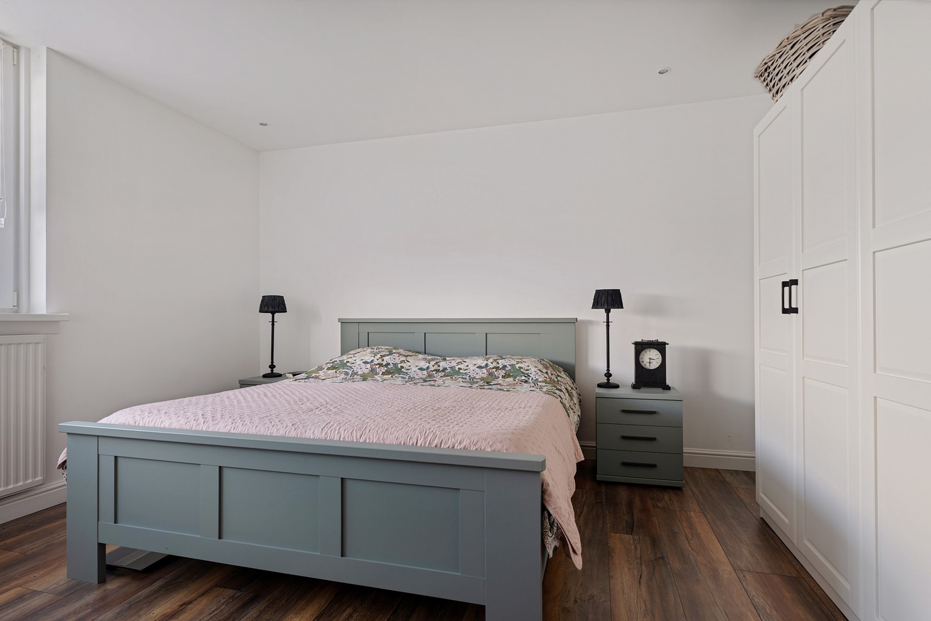Tussenhal met toegang tot het toilet, de badkamer en 2 slaapkamers. Het toilet is modern en licht betegeld. De badkamer is modern, donker betegeld en voorzien van een heerlijke inloopdouche, een fraai wastafelmeubel, een kastruimte met aansluitingen voor was-apparatuur en er is voldoende bewegingsruimte. De beide slaapkamers zijn ruim van opzet (ca. 13m² en 19m²). Vanuit de hoofdslaapkamer is er prachtig uitzicht over Katwijk.