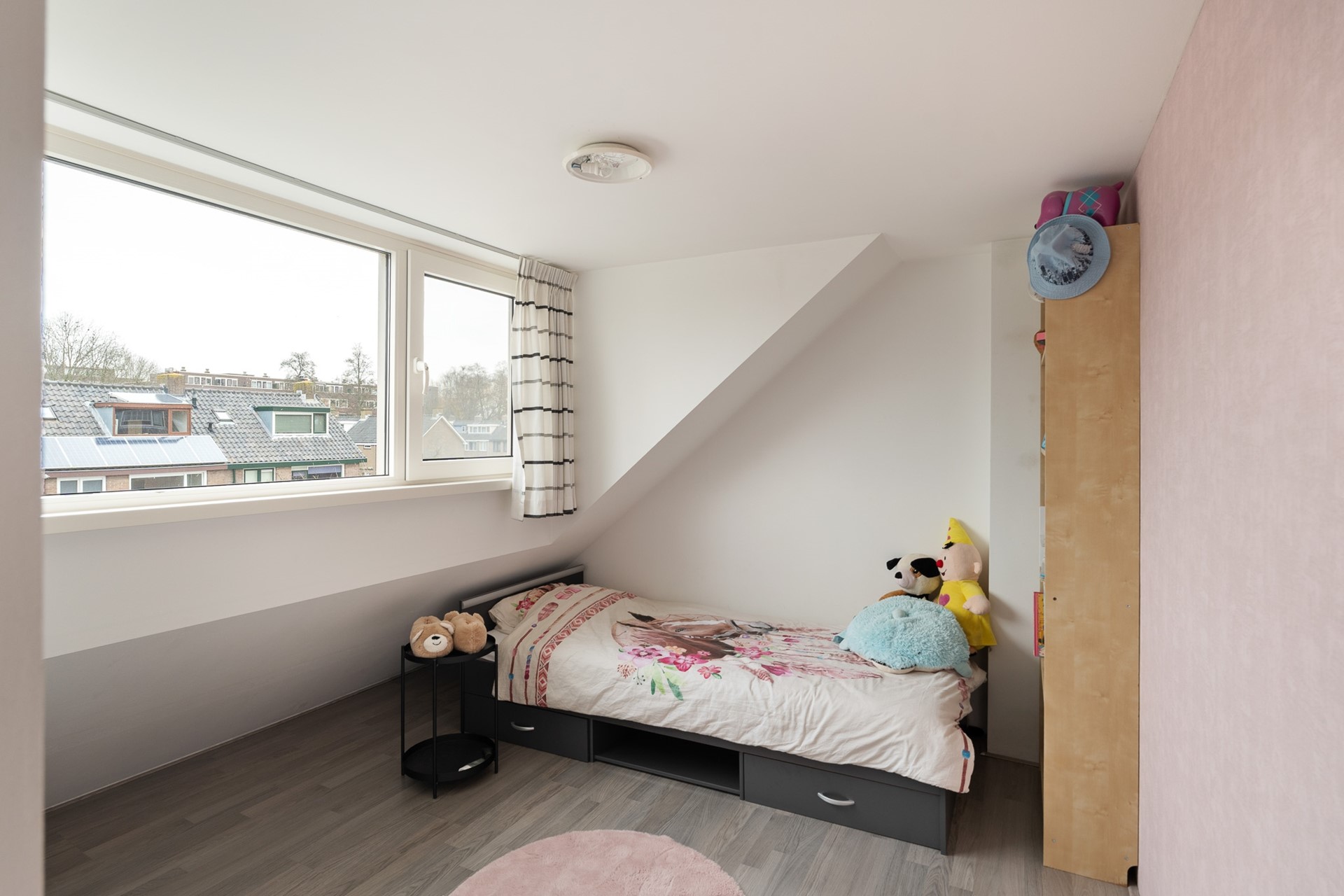 Verder zijn er twee volwaardige slaapkamers, beide voorzien van een dakkapel met kunststof kozijnen en isolatieglas, wat bijdraagt aan het wooncomfort en waardoor er veel lichtinval en extra ruimte ontstaat.