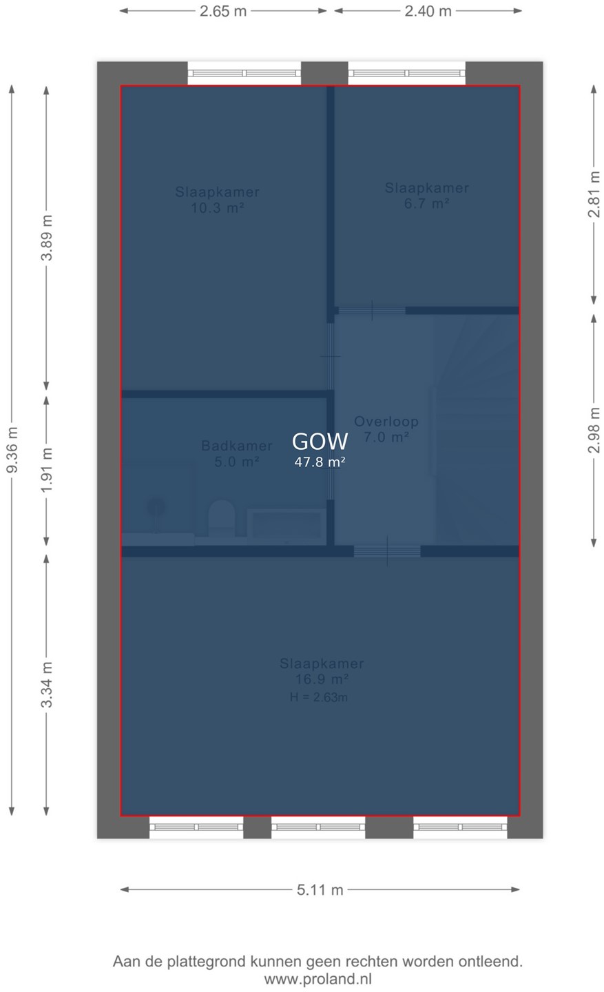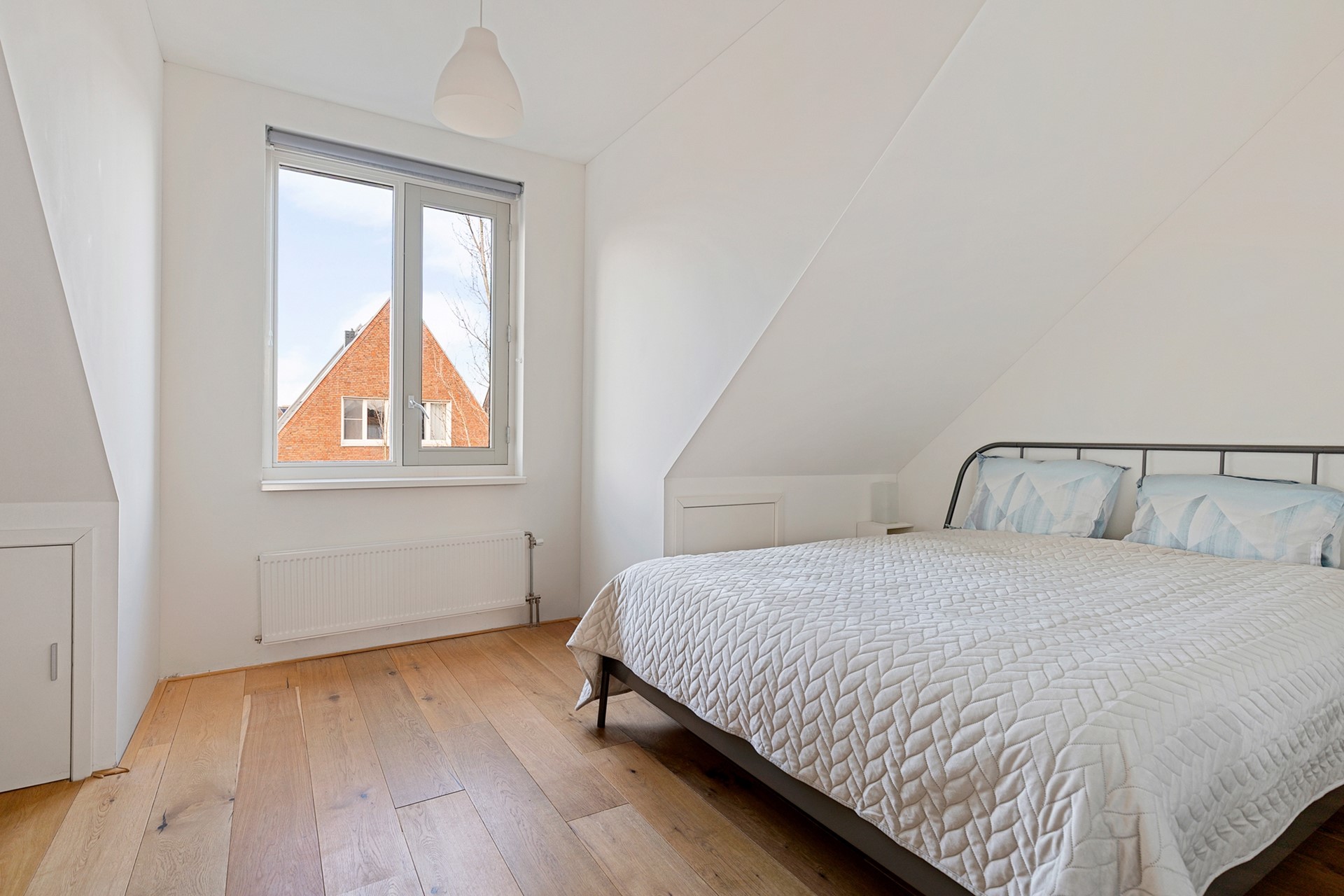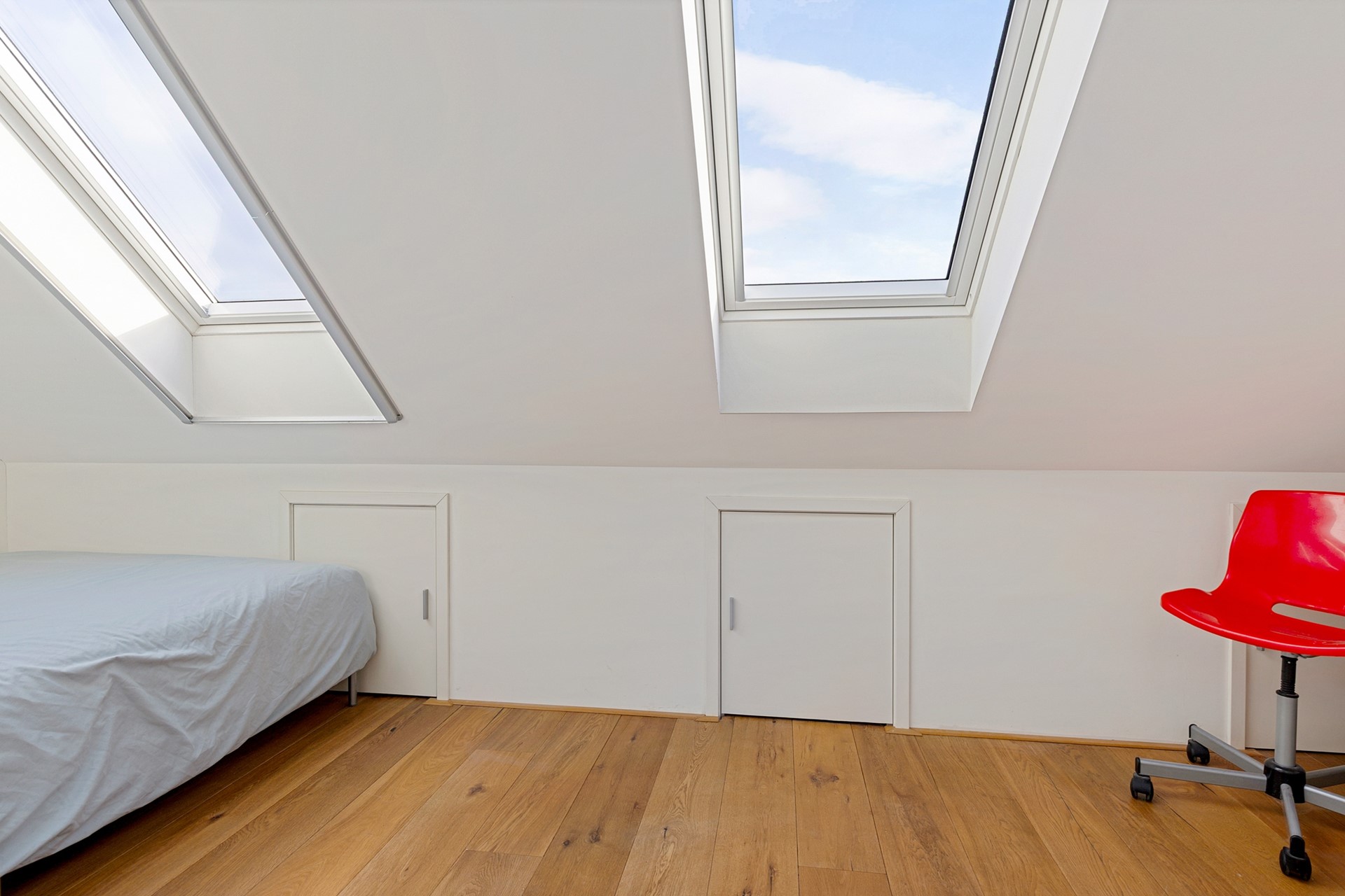 Ook deze verdieping is verrassend ruim. De overloop van ca. 8 m² biedt toegang tot de Inpandige berging / wasruimte / stookruimte – eventueel in te richten als tweede badkamer. Slaapkamer 4 (voorzijde): ca. 14 m², met grote dakkapel en veel licht. Slaapkamer 5 (achterzijde): ca. 10 m², met twee royale 'Velux' kantelramen.