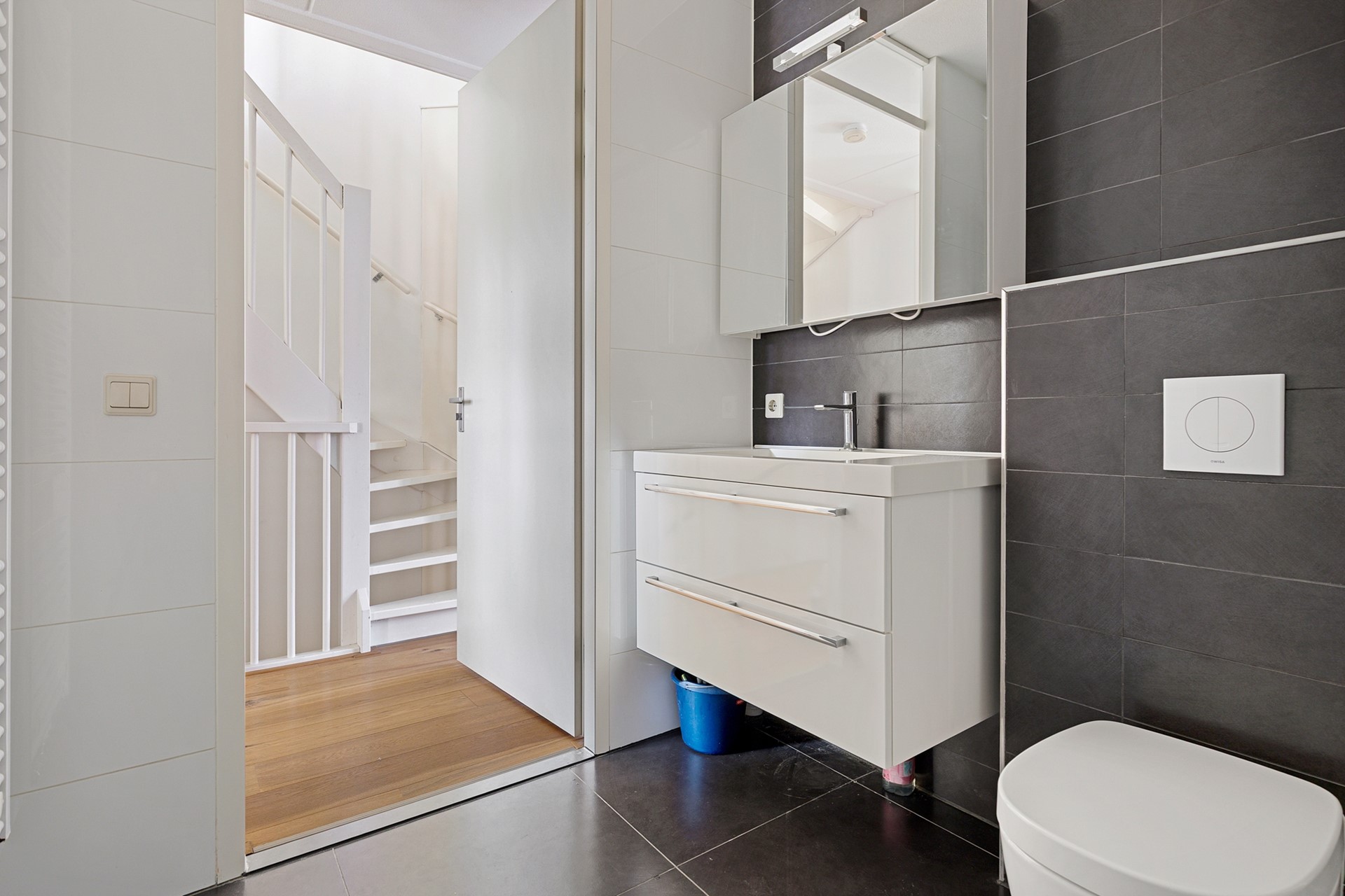 Badkamer: modern betegeld, ca. 5 m² groot – voorzien van een heerlijke inloopdouche, tweede toilet en een fraai wastafelmeubel. Alle ruimtes zijn zeer keurig afgewerkt in een neutrale, moderne stijl.