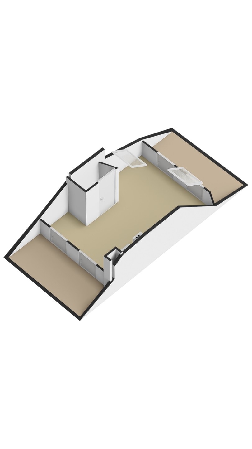 De zolder is eveneens afgewerkt met doorlopend laminaat en biedt extra leef- of werkruimte. Twee Velux dakramen met rolgordijnen zorgen voor lichtinval, terwijl vier knieschotten praktische bergruimte bieden. Hier bevinden zich de cv-ketel uit 2020 en de aansluiting voor de wasmachine.
