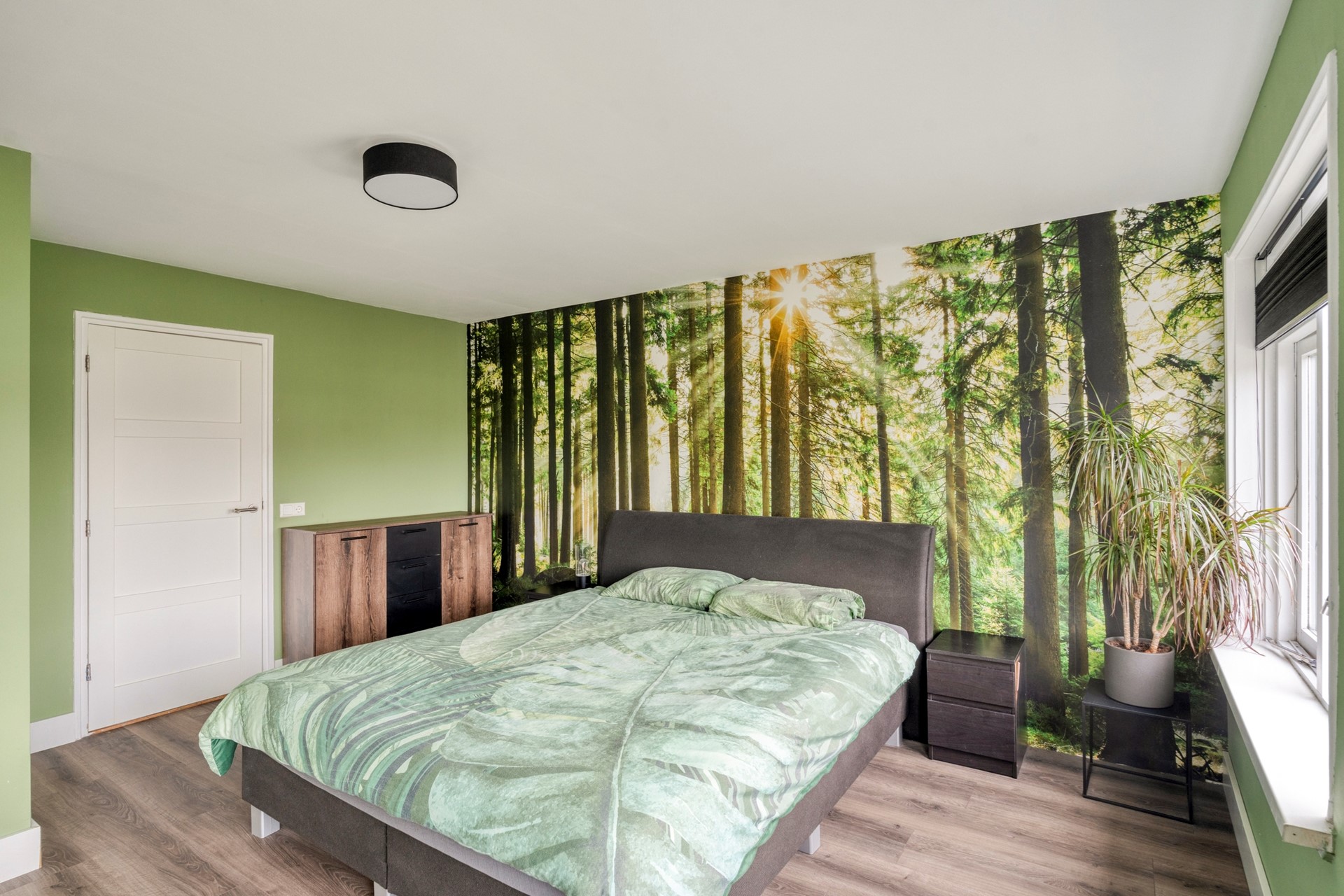 Ook op de eerste verdieping ligt dezelfde brede laminaatvloer, wat zorgt voor een rustige, samenhangende uitstraling. Aan de voorzijde bevinden zich twee slaapkamers. De ruime slaapkamer aan de achterzijde biedt opnieuw een vrij uitzicht over water en groen en voelt hierdoor extra rustig aan. Deuren en beslag zijn in 2020 vernieuwd.